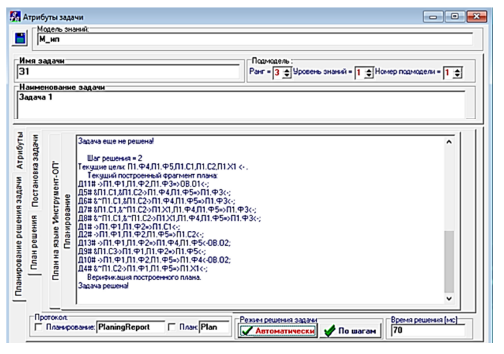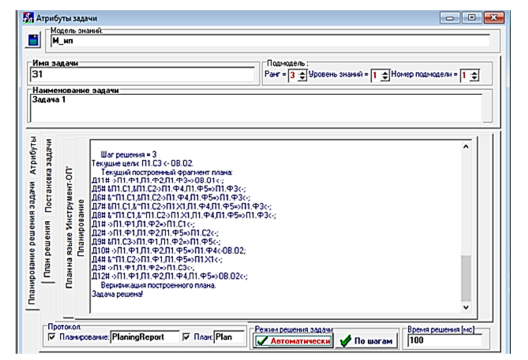 а – protocol for planning actions; б – a constructed plan for solving the problem