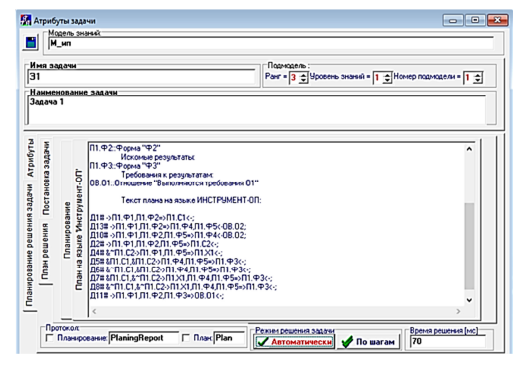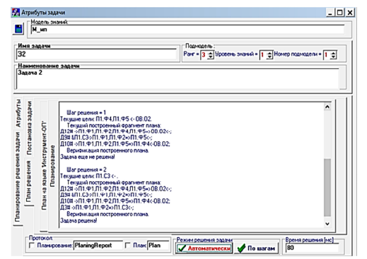 Рис. 2. Протокол решения задачи 1 на скорректированной модели знаний: