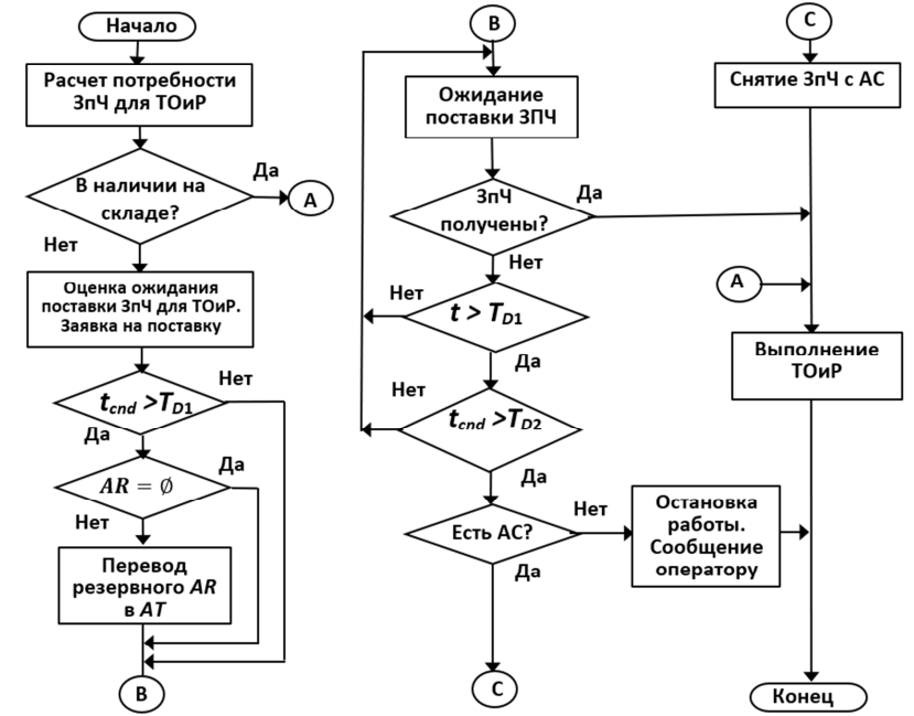 Рис. 3. Алгоритм обеспечения автономных автомобилей запасными частями для ТОиР