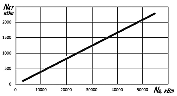 Fig. 3. Estimated dependence of the сompound тurbine power on the main engine power