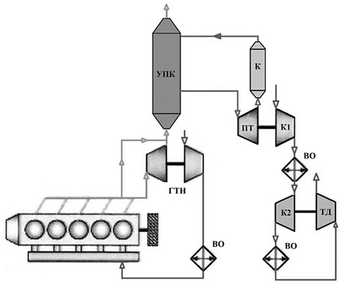 Рис. 4. Схема использования турбокомпаундной системы в турбодетандерной системе утилизации вторичных энергоресурсов
