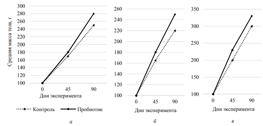 Показатели роста рыб, получавших пробиотические и контрольные корма