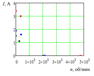 Fig. 17. Experimental dependence data I = f(n) for EM DC24V with 24, 12, 7.4 V