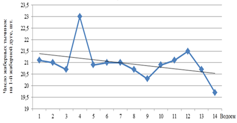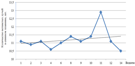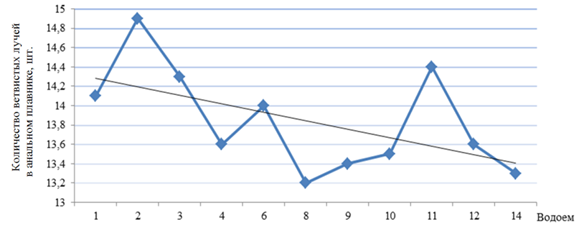 Меристические признаки сиговых менее изменчивы, чем пластические. Известна географическая зависимость изменений счетных признаков, в частности уменьшение числа тычинок и увеличение числа чешуй и позвонков у рыб в реках с запада на восток. Было установлено, что это связано не столько с местоположением водоема, сколько с температурой, соленостью и некоторыми другими факторами [6]. Ниже представлены данные по некоторым меристическим признакам различных географических форм нельмы (табл. 1).