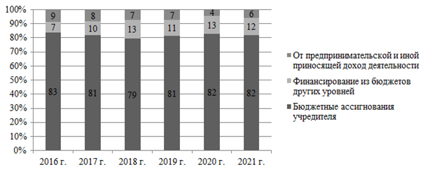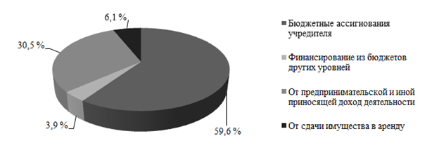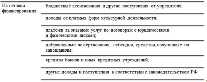 Основной удельный вес в структуре учреждений культуры занимают бюджетные (подведомственные Министерству культуры РФ) [2]. Их деятельность осуществляется на основании государственного или муниципального задания (Федеральный закон № 7-ФЗ от 12.01.1996 «О некоммерческих организациях»). Для выполнения задания учредитель определяет конкретному бюджетному учреждению размер субсидии на финансовый год. Объем финансирования выполнения бюджетным учреждением государственного задания определен Постановлением Правительства РФ от 26.06.2015 № 640 «О порядке формирования государственного задания на оказание государственных услуг (выполнение работ) в отношении федеральных государственных учреждений и финансового обеспечения выполнения государственного задания» и зависит от установленных нормативов на оказание конкретной услуги.