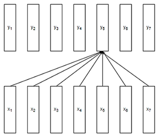 Сеть-трансформер (рис. 5) на каждом слое вычисляет представления токенов xi, учитывая представления (вектора yi) всех токенов на предыдущем слое.