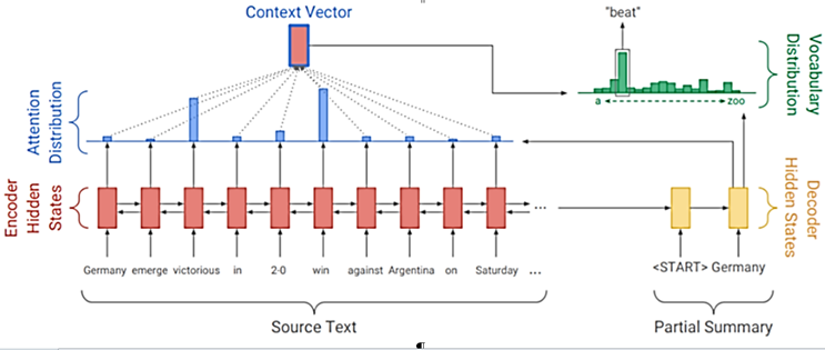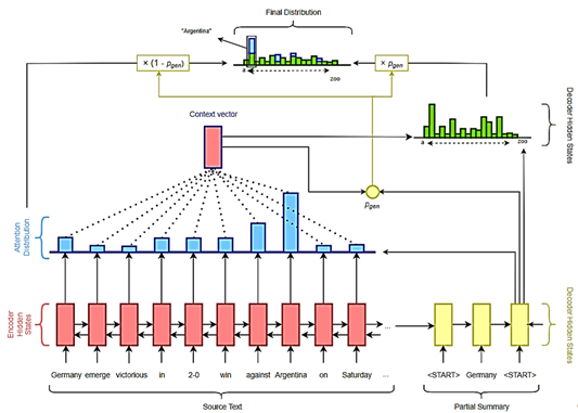 Рис. 9. Архитектура работы сети Pointer Generator Network