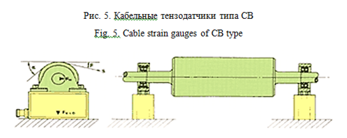 Кабельный тензодатчик СВ200 [5] (рис. 5) используется для измерения нагрузки натяжения, приложенной к кабелю. Система валов для измерения натяжения с указанием приложения сил представлена на рис. 6.