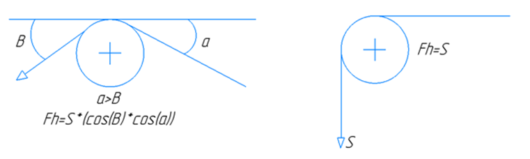 Принцип работы датчика состоит в натяжении кабеля, которое вызывает изгиб тензобалки – чувствительного элемента датчика. Вектор изгиба (рис. 7) равен биссектрисе угла материала, проходящего по измерительному валику. Значение этой силы равно натяжению кабеля. Измеренное значение натяжения поступает в контроллер, который будет выдавать соответствующее управляющее воздействие на ПЧ.