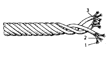 1 – filaments and threads; 2 – rope-yarn; 3 – lock; 4 – strand