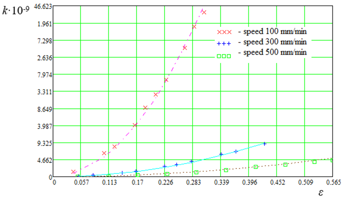 Fig. 9. Graphs of dependence k = f(ε, v)