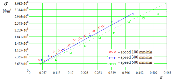Fig. 10. Plots of dependence σ = f(ε, v)