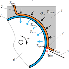 Qср – thermal energy of environment supplied to the freezing object; Qохл – thermal energy diverted from a freezing object; Qпр – string thermal energy supplied to a freezing object; w – drum rotation