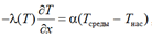 где α – коэффициент теплоотдачи, Вт/(м2 ∙ К); Тсреды – температура для воздушной среды при взаимодействии с охлаждаемым образцом, °С; Тнач – температура для граничного слоя материала при взаимодействии с воздухом, °С.