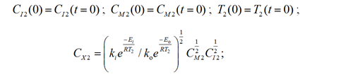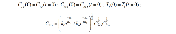 Математическая модель реактора полимеризации (4)–(15) содержит начальные условия (5), (8), (11) и (14), которые неизвестны и могут быть определены из решения уравнений модели статики. При расчете статического режима производные дифференциальных уравнений в модели приравниваются