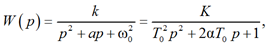 где a, k – коэффициенты передаточной функции; K = k / ω02; T0 = 1 / ω0 – постоянная времени; для систем второго порядка 0 ≤ α < 1.