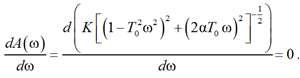 Используя выражение для показателя колебательности, выведем формулу для его вычисления с учетом формулы (3). Из нее следует, что статический коэффициент передачи системы A(0) = K. Для нахождения A(ω)max необходимо вычислить производную от A(ω) из формулы (3) и далее приравнять ее к нулю: