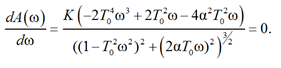 Далее приравняем к нулю числитель выражения (5) и после алгебраических преобразований получим уравнение для определения частоты ωmax, при которой имеет максимальное значение АЧХ A(ω)max: