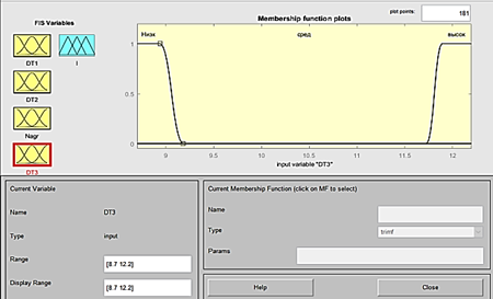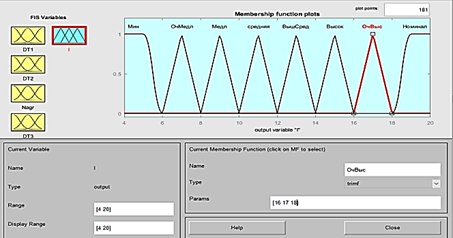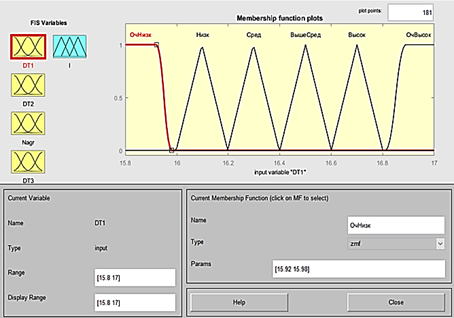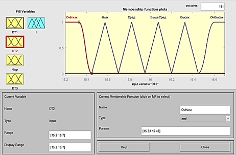 Для каждого датчика было установлено соответствие между численными значениями входной переменной системы нечеткого вывода и значением функции принадлежности (рис. 12–15).