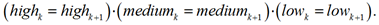 Для максимумов яркости каждого уровня highk, mediumk и lowk столбца k и максимумов яркости уровней highk + 1, mediumk + 1 и lowk + 1 столбца k + 1 требуется, чтобы выполнялось следующее условие: