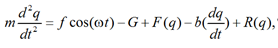 – ускорение массы, м/с2; m – масса, кг; f – амплитуда вынуждающей силы, Н; ω – угловая частота вынуждающей силы, рад/с; t – время, с; G – вес, Н; F(q) – сила компенсатора веса, Н; b – коэффициент вязкости демпфера, (Н·с)/м;