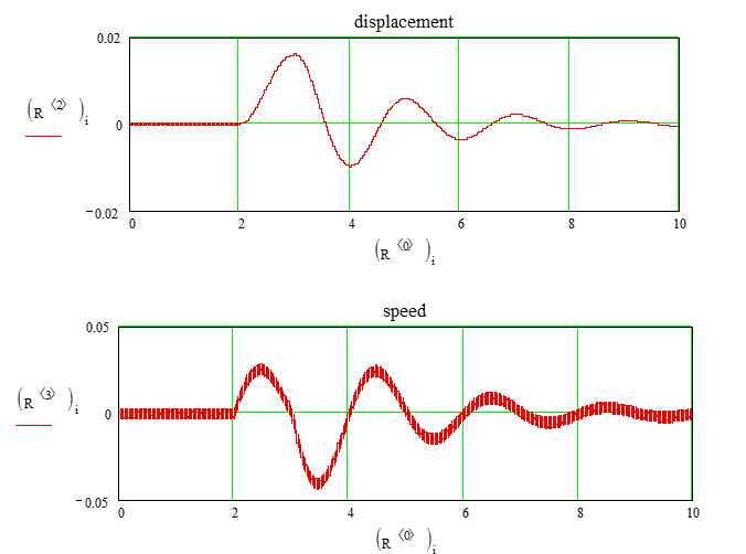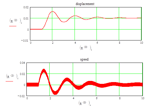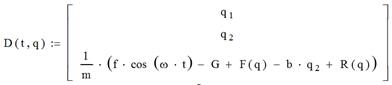 В этом уравнении нет смещения, поскольку нет упругого элемента, как в традиционной опоре. Для численного решения запишем выражение в соответствии с процедурой rkfixed (рис. 2).