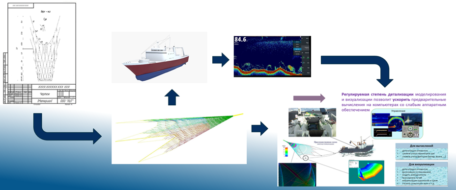 рыболовства необходимо использовать математический аппарат, а именно математические, имитационные и предсказательные модели процессов эксплуатации орудий промышленного рыболовства. В процессе проектирования необходимо использовать теорию мультифизического подобия орудий и процессов рыболовства. Важно понимать, что все процессы эксплуатации орудий промышленного рыболовства описать математически