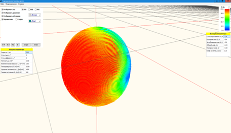 В вышеуказанной программе возможно моделировать любые детали и элементы орудий промышленного рыболовства. На рис. 6 изображено имитационное моделирование кухтыля в форме шара, на рис. 7 изображен процесс обтекания частицами воды крученого каната (его элемента).