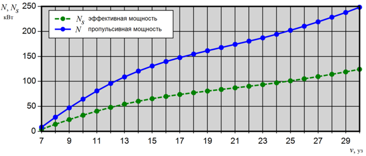 Мощность траления Ns – мощность, которую необходимо затратить на преодоление сил сопротивления. Мощность траления необходимо затратить непосредственно на движение судна с заданной скоростью. Согласно определению понятия мощности, она равна