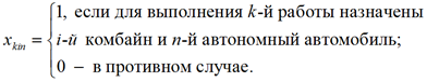 где tjk – время работы автомобиля Aj при выполнении задачи zk; tk – время выполнения задачи zk; Ij – индексное множество задач, для выполнения которых был назначен автомобиль Aj.