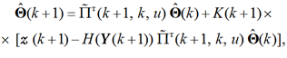 – входной вектор-столбец НСФ, представляющий собой, с точки зрения фильтрации, вектор-столбец оцениваемых (наблюдаемых, измеряемых) ПЗ КВР Y(k + 1) в виде