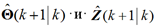 – экстраполированные оценки значений векторов-столбцов состояния процесса и наблюдения за процессом смены состояний ПЗ КВР на (k + 1)-м шаге соответственно;