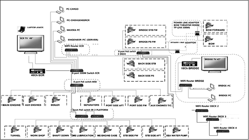 Размещение видеокамер досконально обсуждалось и согласовывалось с капитаном и старшим механиком судна. Окончательная комплектация системы утверждалась техническим менеджментом судовладельца. При разворачивании на судне локальной сети Wi-Fi предусмотрена возможность видеть данные с любой видеокамеры на подключенном смартфоне вахтенного помощника, вахтенного механика, старшего механика и капитана (реализовано в тестовом варианте на одном из судов проекта В-178). Практическая эксплуатация видеоконтрольного комплекса неоднократно подтвердила упрощение многих операций из судовой практики. Позитивное влияние простого и эффективного контроля заметно во многих секторах, от банального соблюдения правил охраны труда до уменьшения времени швартовых операций. Казалось бы, система не имеет никакого прямого отношения к энергоэффективности, но рационализация рабочих процессов, сбережение времени членов экипажа, упрощение некоторых технических мероприятий по контролю в комплексе однозначно оказывают положительное влияние на эффективность эксплуатации судна.