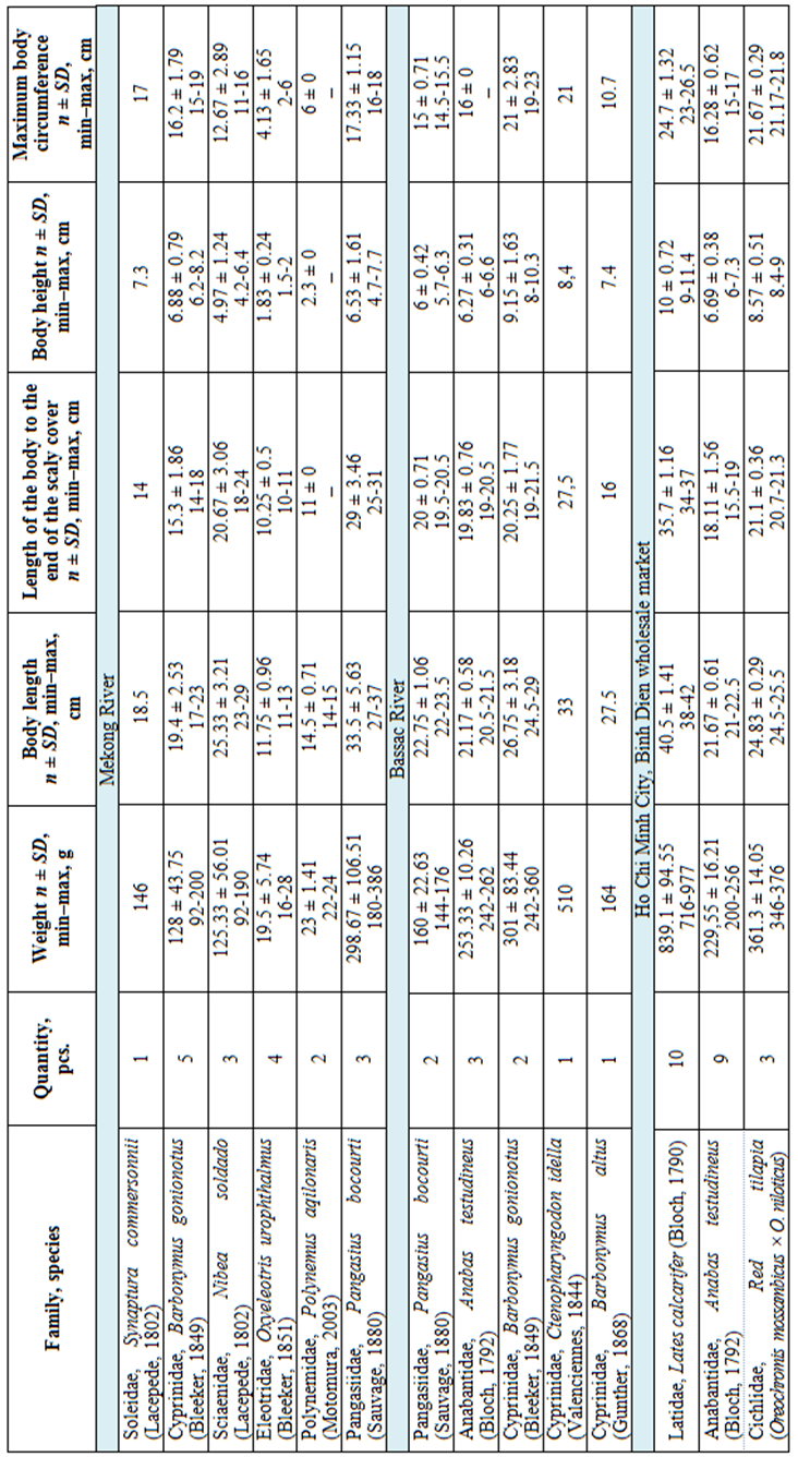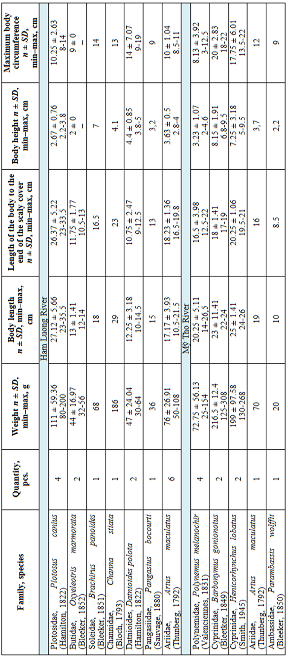 Thus, our studies have shown that the morphometric indicators and fatness of the studied fish of the Mekong River basin of South Vietnam correspond to their species characteristics.