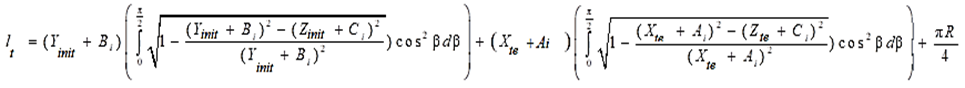 where lt – distance of trajectory; Yinit – initial coordinate at Y axe; Ai, Bi, Ci − respectively, the geometric dimensions of the manipulation object; Zinit – initial coordinate at Z axe; b – the angle of rotation of the IR arm when installing the manipulation object on the technical equipment (TE); Xte – position coordinate of TE at X axis; Zte – position coordinate of TE at Z axis; R – the radius of the rotational movement of the arm IR, performed when it passes from the coordinate system 0YZ to the coordinate system X0Z.