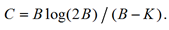 Общее количество операций для выполнения двух прямых и одного обратного преобразования Фурье будет пропорционально Blog(2B). Вычислительные затраты на умножение результатов БПФ и на объединение секций будут иметь меньший порядок, и ими можно пренебречь. По результатам обработки одной секции находится B – K отсчетов выходного сигнала. Таким образом, нам нужно минимизировать следующее соотношение: