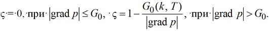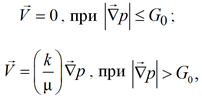 Для математического моделирования движения неньютоновской жидкости предлагаются различные модификации закона Дарси. Для месторождений, где с понижением температуры (меньше 20 ºС), нефть приобретает вязкопластичные свойства, предложена модель, где фильтрация считается невозможной, а при больших градиентах фильтрации описывается законом Дарси: