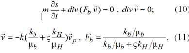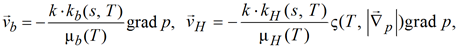 – скорость течения воды; kb(s, T) – проницаемость; s – насыщенность; T – температура; µb(T) – вязкость;