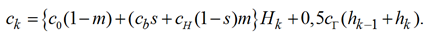 Удельная теплоемкость на единицу площади k-го пропластка вычисляется с присоединением глинистых перемычек [1, 2, 7]: