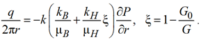Формула (23) позволяет явно вычислить дебит скважины на единицу мощности:
