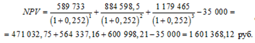 Проведем расчет показателя NPV с коэффициентом дисконтирования денежных потоков, учитывающим инфляцию: