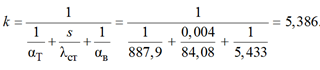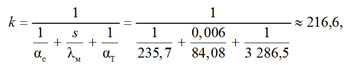 Коэффициент теплопередачи k, Вт/(м2·К), определяется по формуле [12]