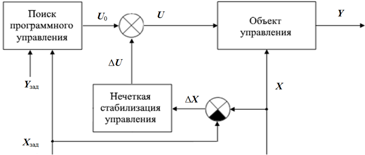 Рис. 1. Структурная схема интеллектуальной системы с нечеткой стабилизацией управления: