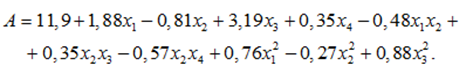 Модели старения ММ (4), (7) и (8) по АП, АС и А скорректированы, т. к. отдельные коэффициенты при квадратичных членах у них оказались статически незначимыми и были исключены из первичных (исходных) уравнений регрессий, рассчитанных по данным табл. 2. Пересчет осуществлен, как уже указывалось, с использованием метода наименьших квадратов составлением и решением системы нормальных уравнений по полному полиному четырехфакторной модели [12].
