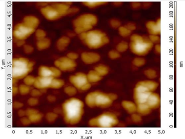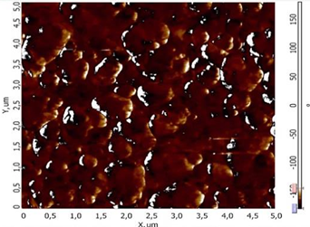 Рис. 7. Морфология поверхности образца для сканирования пьезоотклика (5 × 5 мкм)