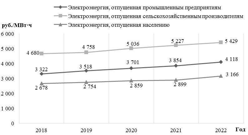 Рис. 5. Средние цены производителей на электроэнергию по категориям потребителей (2018–2022 гг.)
