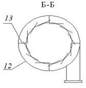 11 – vertical rectangular partitions; 12 – drying chamber; 13 – fasteners; А, Б, В, Г – letter designation of the incision;