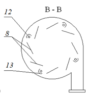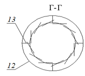 11 – вертикальные прямоугольные перегородки; 12 – сушильная камера; 13 – крепления;