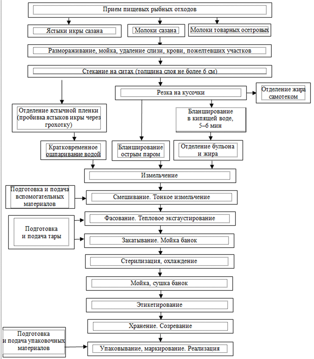 Fig. 2. Technological scheme for the manufacture of canned food “Combined pate from milt and fish roe”