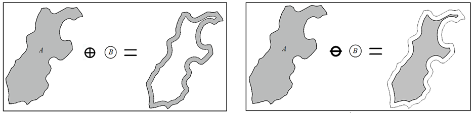 Сумма Минковского позволяет расширить границы объекта (внешняя буферизация, см. рис. 2, а), разность – уменьшить (внутренняя буферизация, см. рис. 2, б).